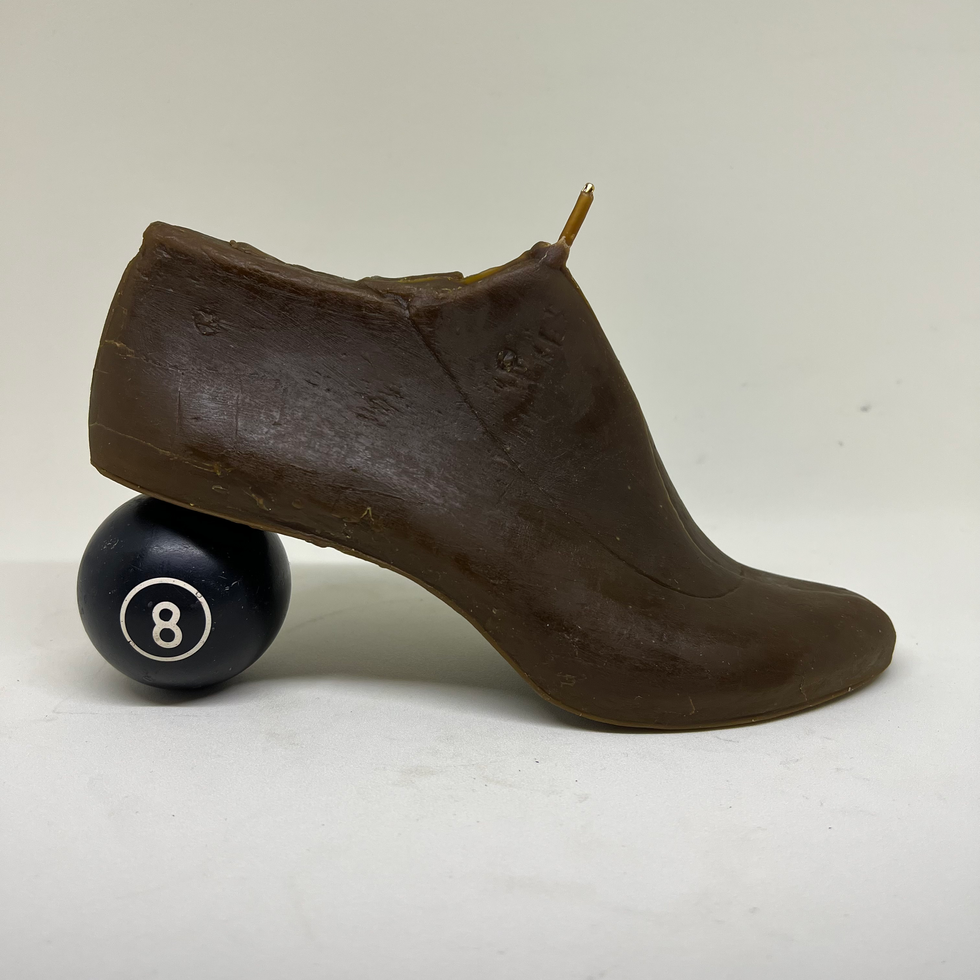 Antiga forma de madeira, um sapatinho feminino, eternizado em forma de vela.